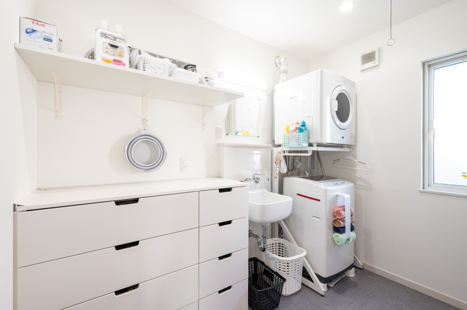 乾いた服をその場で畳み、すぐ横のファミリークローゼットへ。この「家事の完結」が、忙しい共働き世帯の自由な時間を生み出します。