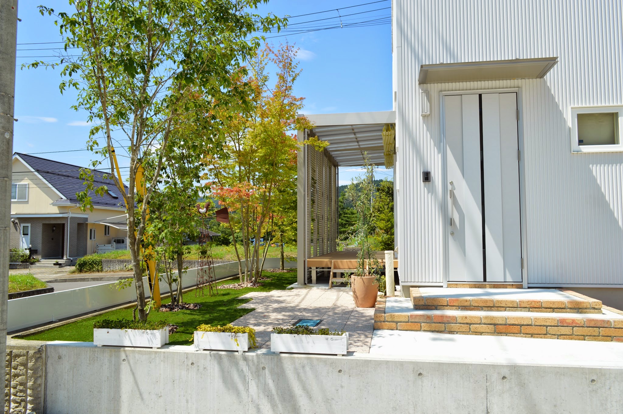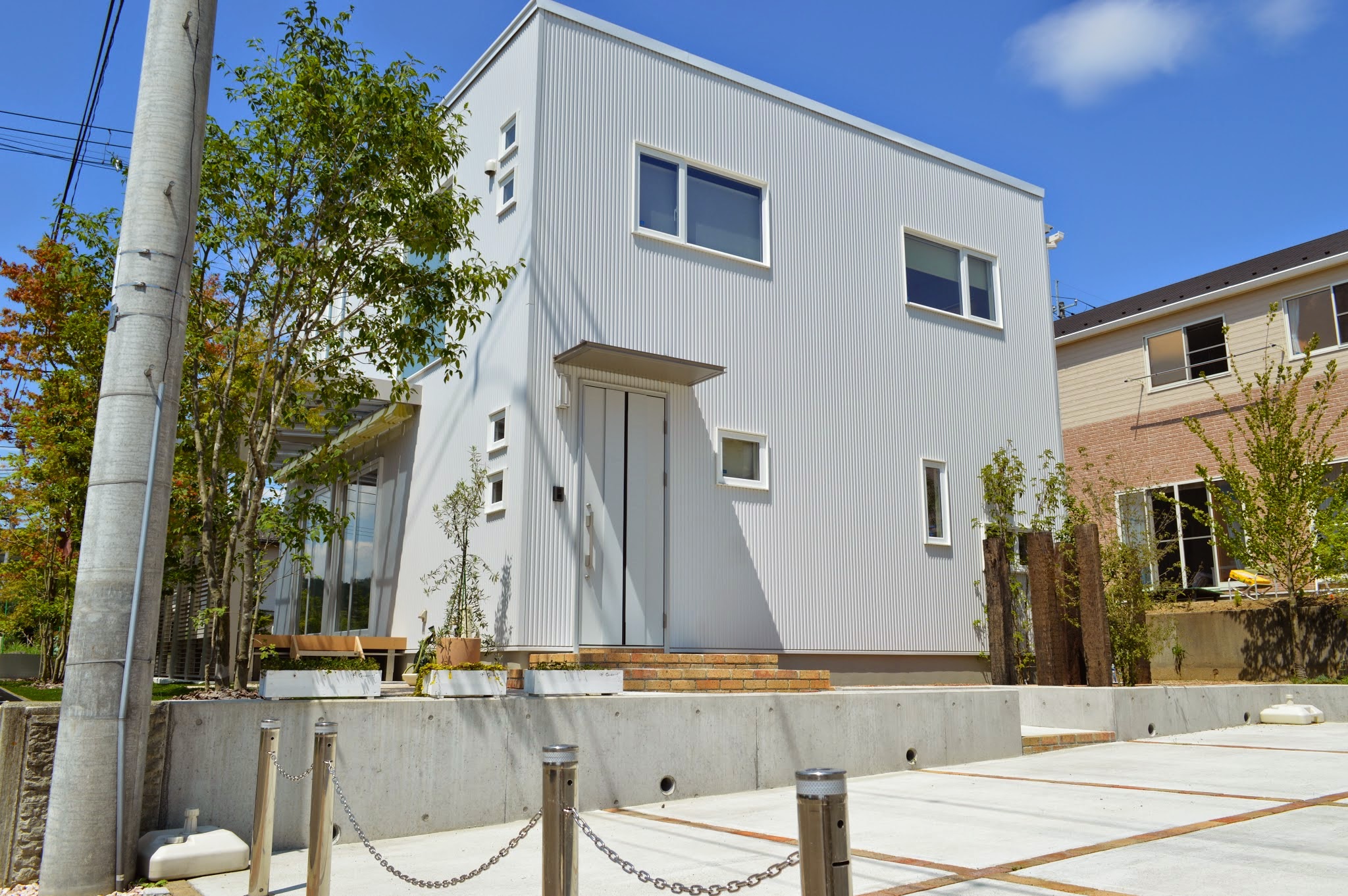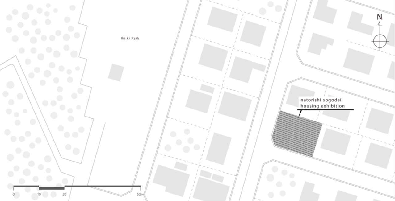 南西の2方道路の角地。間口14m、奥行き16mで道路の隅切りのため、5角形の敷地。東側の幅5m部分は50cmほど下がっており車の乗り入れが可能。それ以外の部分は道路との段差がある。