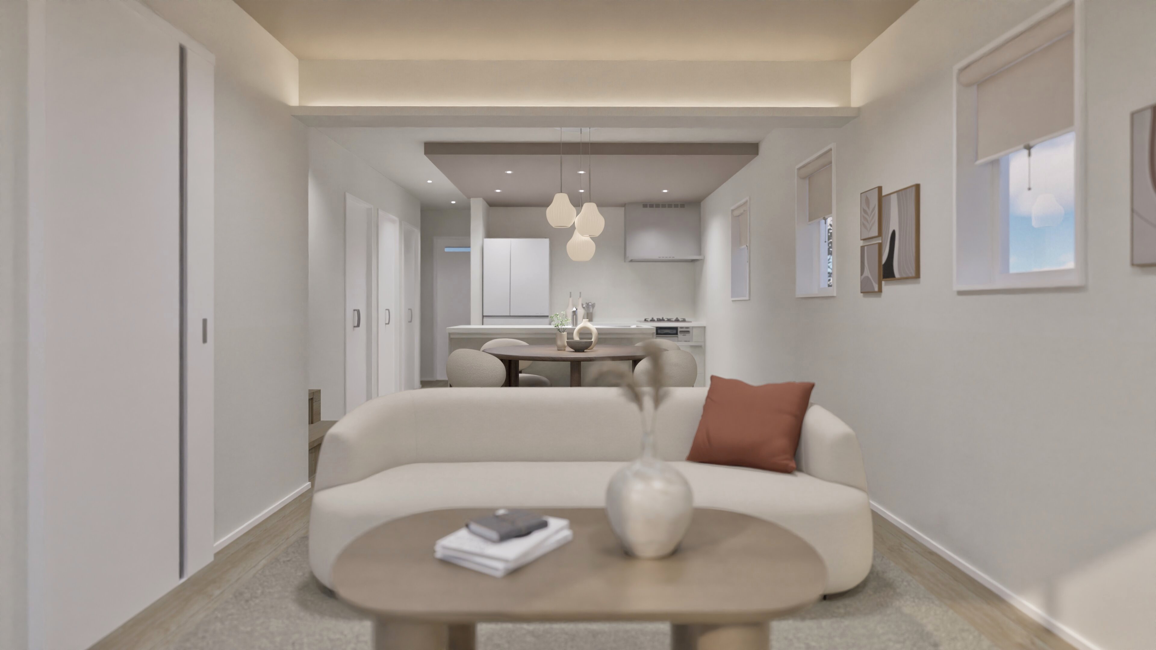 生活感を抑えつつ温かみのあるミニマル空間。