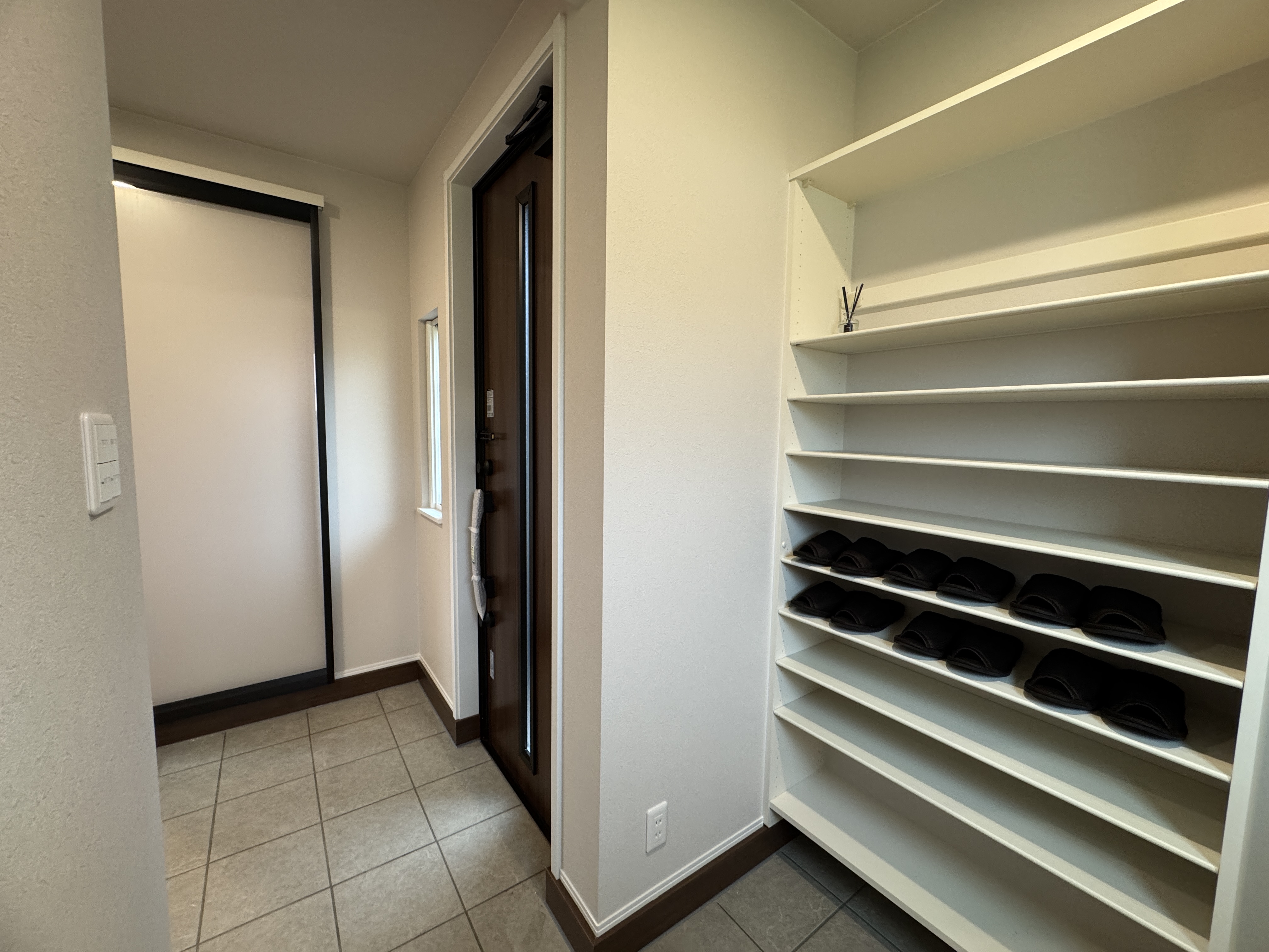 玄関には靴やお出かけの荷物をしまえる大容量の収納付き。 キッチンのパントリーには非常時に備えたローリングストックを。