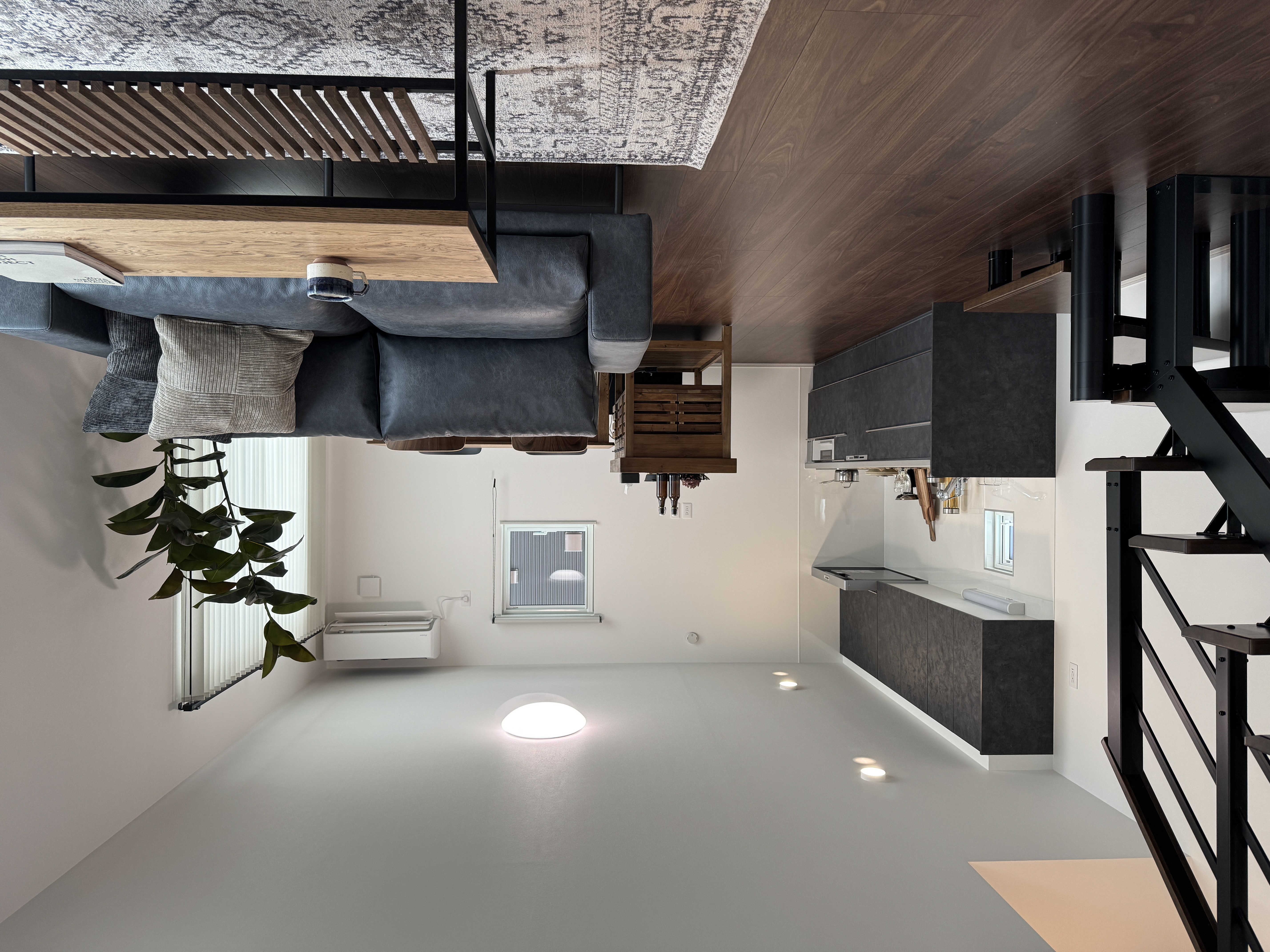 ユニテハウスの箱型は空間をもっとも効率よく使える形状。 室内も凹凸が少なく、ロボット掃除機を使ったお掃除にもぴったり。