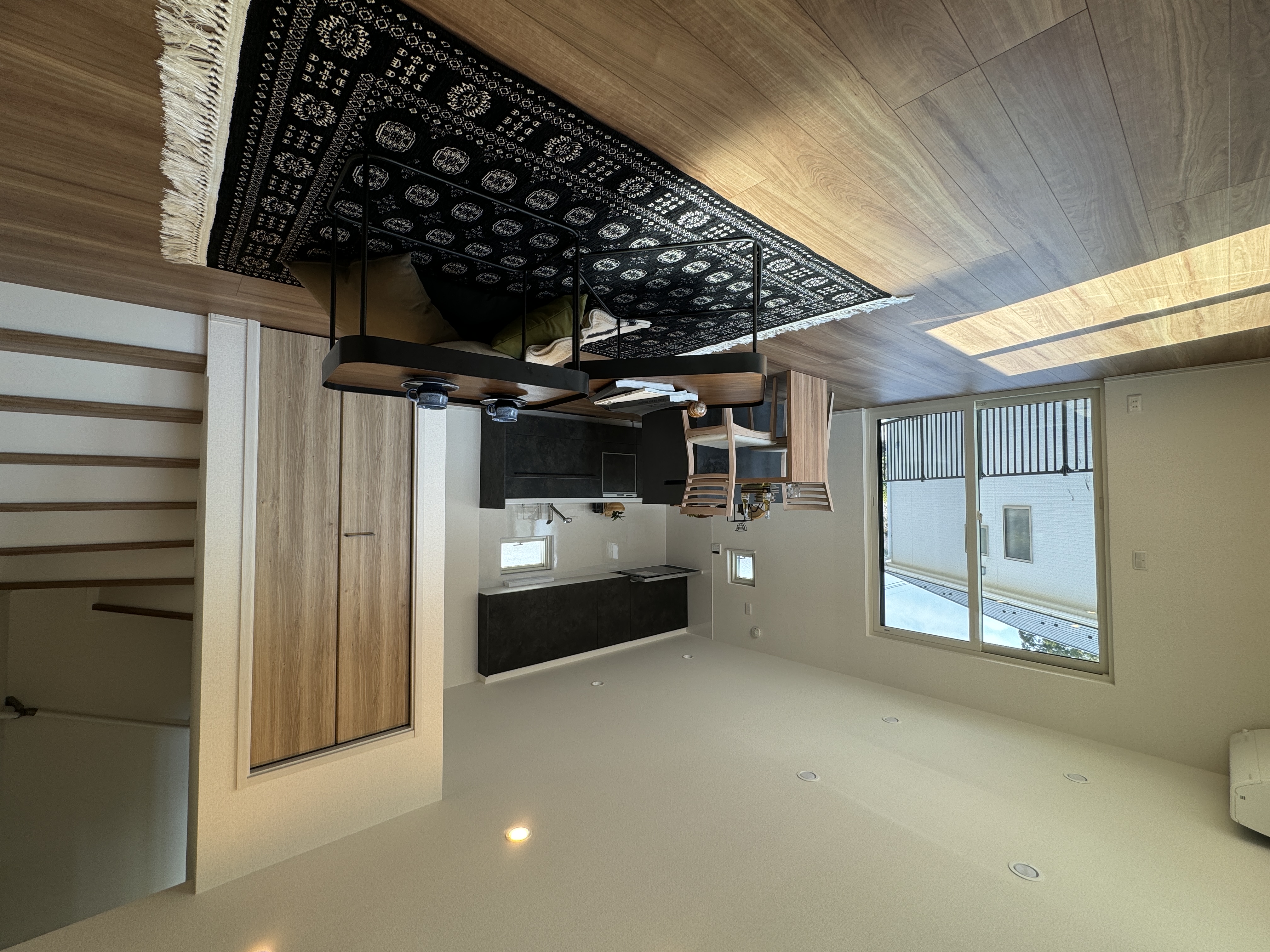 オリジナルアイランドカウンターを設置し、対面キッチンのような機能性も。 家族みんなで料理をするのにも活躍します!