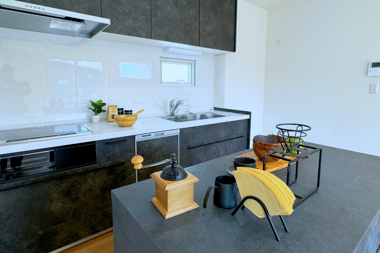 オリジナルアイランドカウンターを設置し、対面キッチンのような機能性も。 家族みんなで料理をするのにも活躍します!