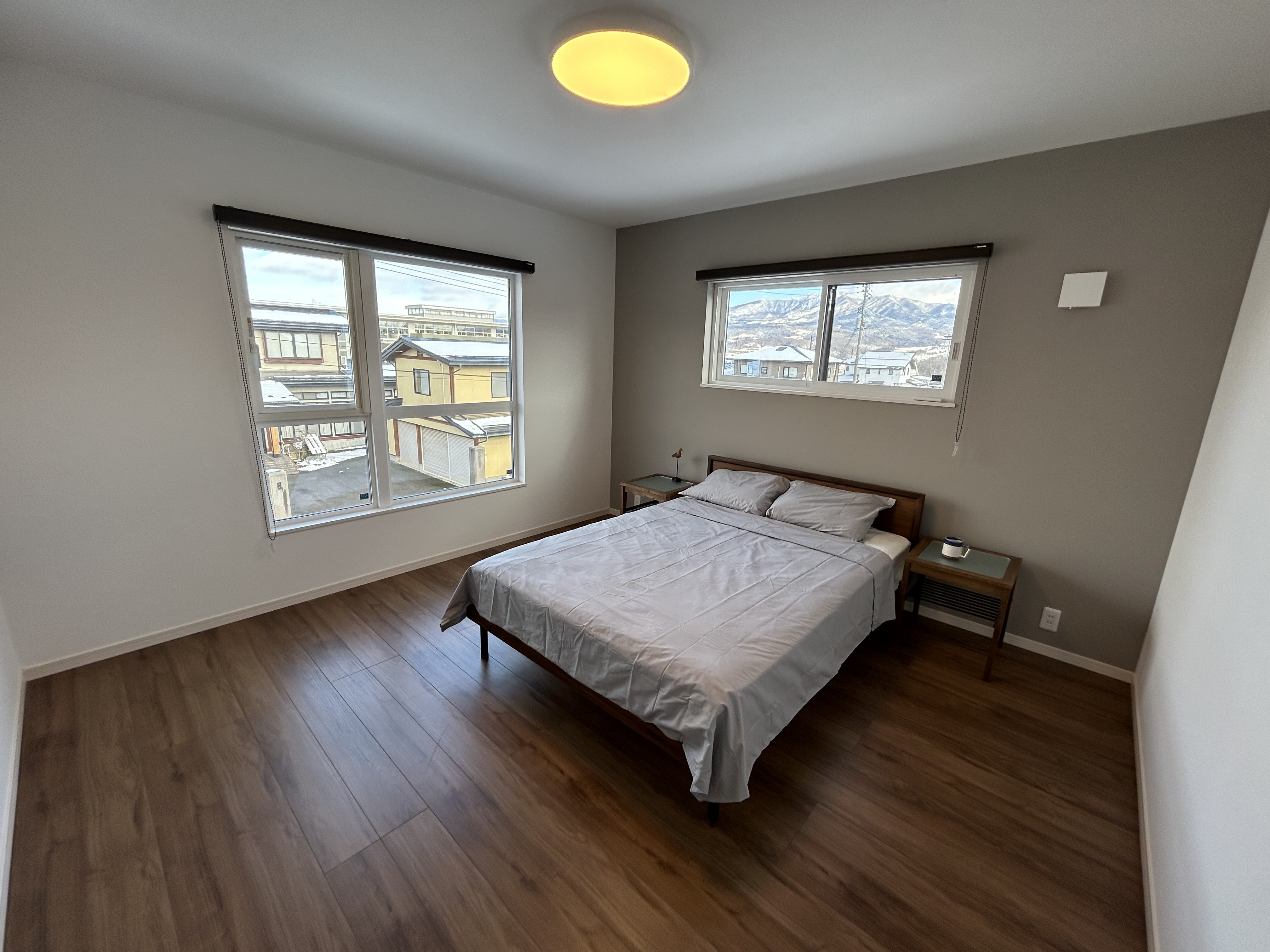 2F主寝室の窓からは、美しい山々が望めます。 四季を感じられる特別な空間です。